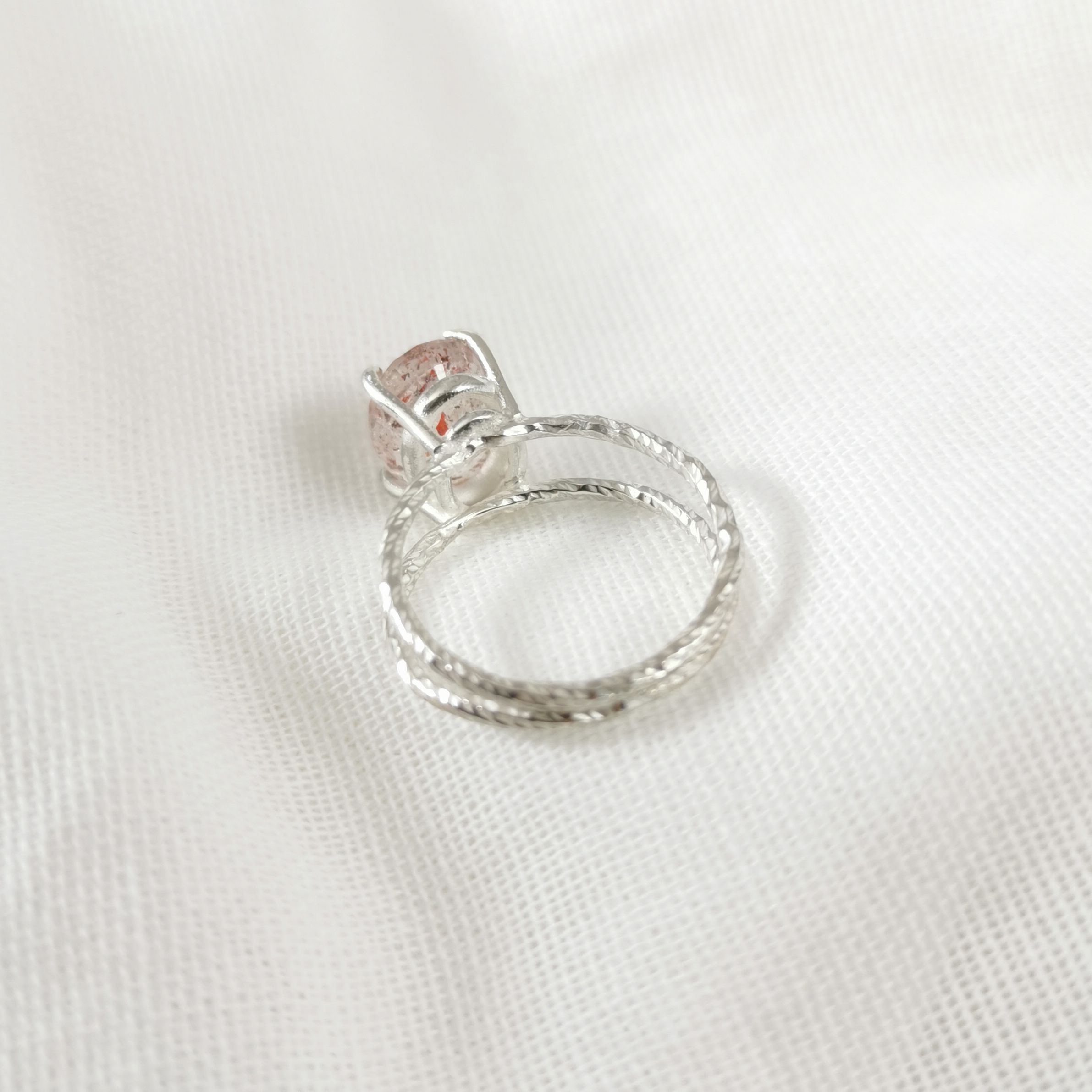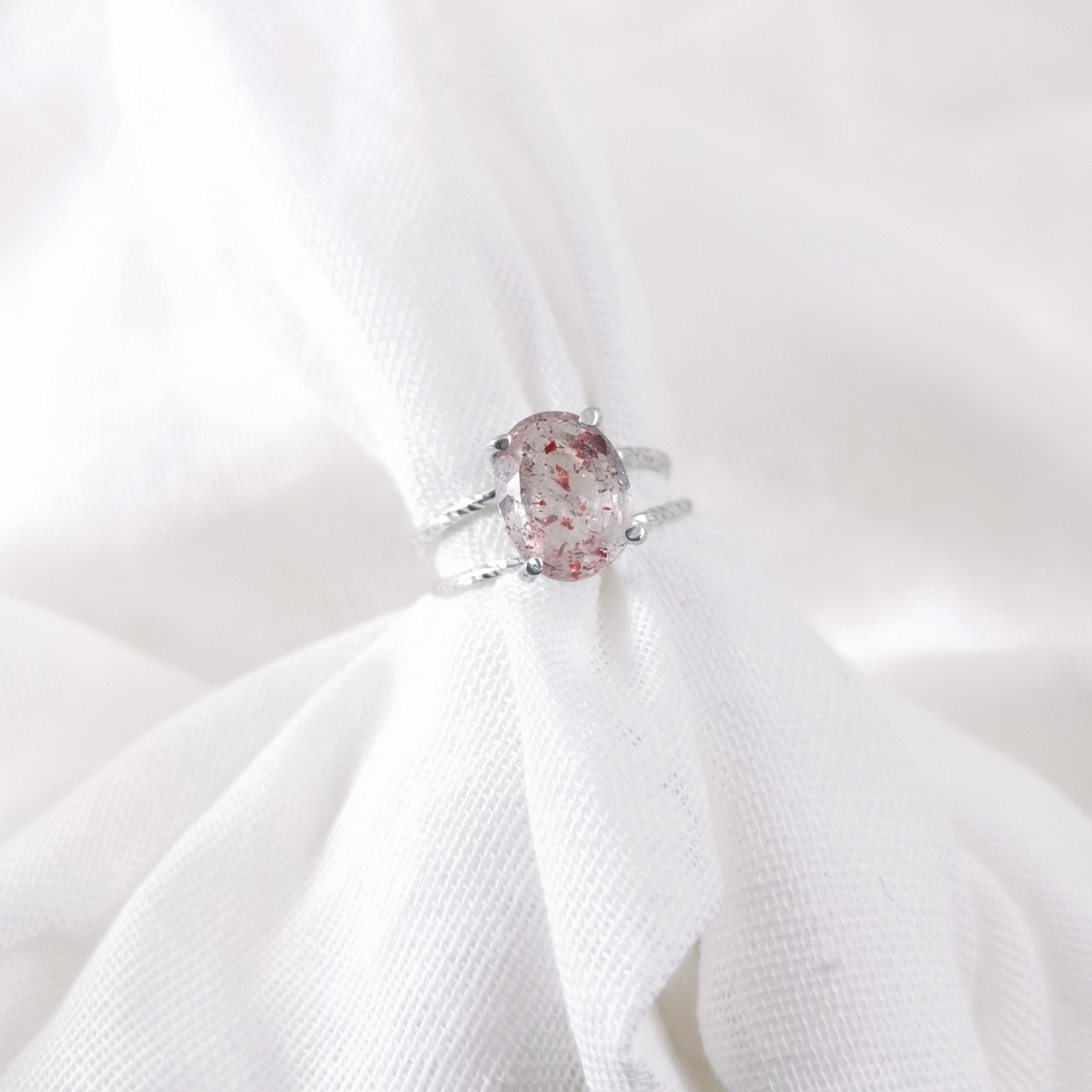 Bague Belle Epoque Argent & Quartz Hématite ovale (pièce unique)